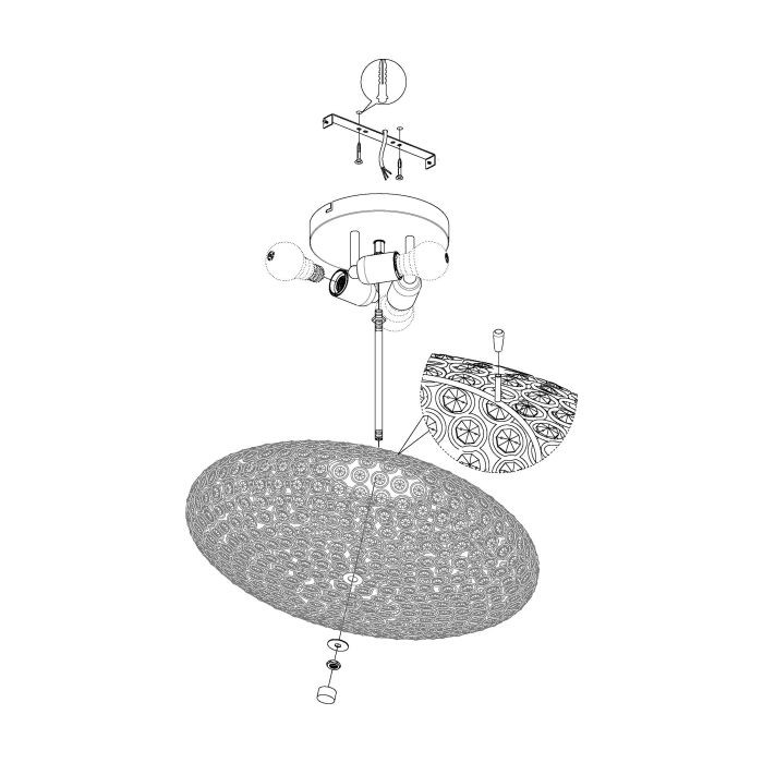 The CLEMENTE ceiling light features a chrome-coloured metal body and an oval lampshade made from rows of clear crystals-inspired cut glass. The crystal elements create a sparkling, high-quality look when the light is on. The ceiling light blends elegantly into modern interiors, creating a desirable ambience in any space, whether in the living room, bedroom or hallway. The product has E27 lamp holders and requires 3 x E27 lightbulbs.