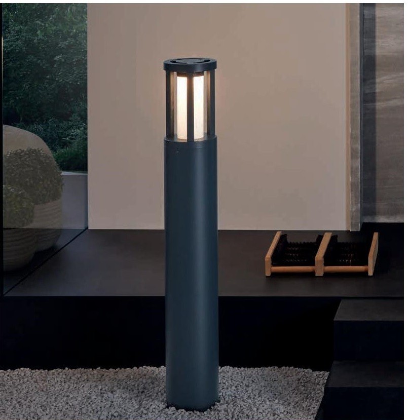 The Gisola pedestal light is an elegant outdoor lighting solution, featuring a robust cast aluminium body in anthracite and a satin finish plastic shade. Standing at 450mm tall with a diameter of 150mm, this durable light fixture seamlessly blends functionality and style.