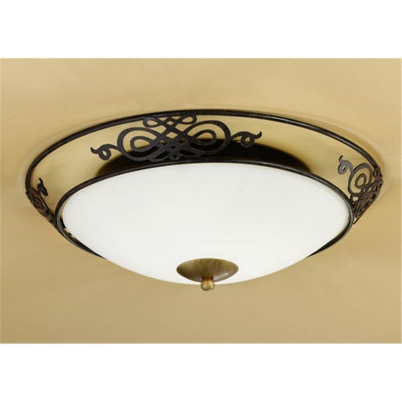 This is an Eglo product, item code 86712. The Mestre 2 light Traditional Ceiling light has an antique brown finish with gold detail. The light fits flush to the ceiling and is available in Small and large.