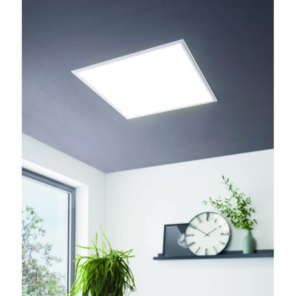 The EGLO SALOBRENA-A ceiling light (model 98201) is an indoor fixture from the EGLO Access segment, featuring a white aluminum enclosure and a white plastic shade. It supports remote control functionality with CCT features and is dimmable. The light offers a tunable white color temperature range of 2700-6500K, providing a total output of 1850 lumens.